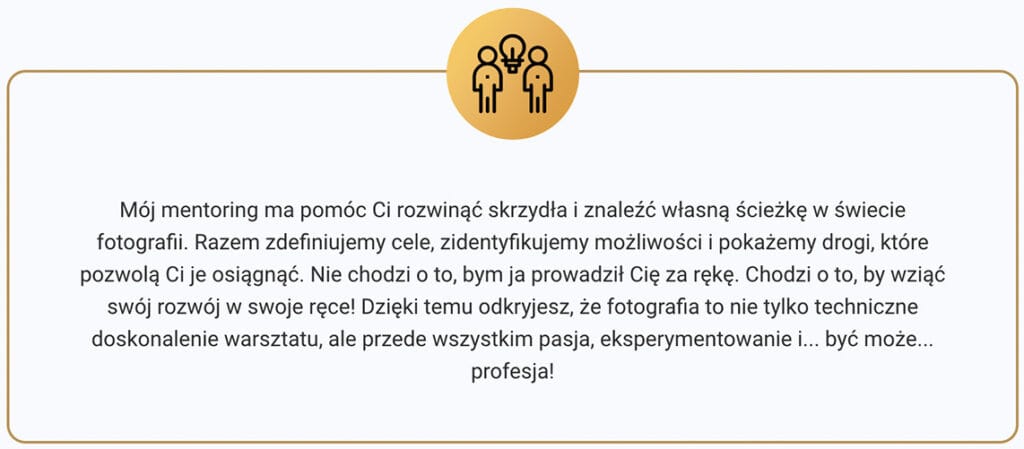 Dla fotografów początkujących do średniozaawansowanych, którzy chcą osiągnąć swoje cele zawodowe, rozwijać warsztat i zbudować silną pozycję na rynku.